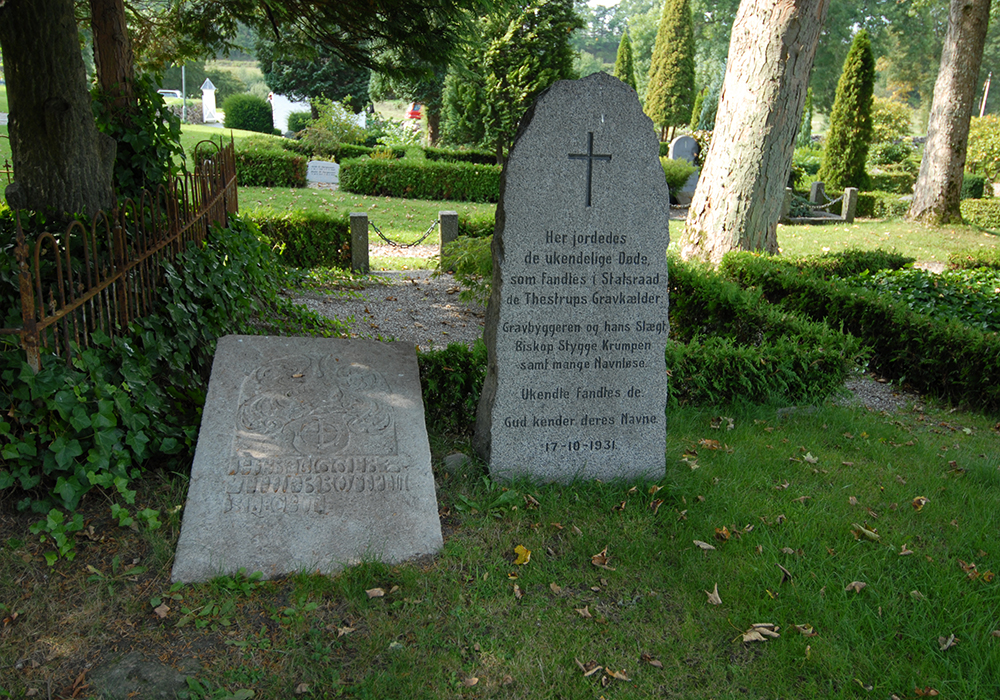 Rundt om i kirken ses et antal adelige ligsten, der for en dels vedkommende er meget slidte. Her skal omtales et par af de mere interessante, historiske personligheder, brødrene Otte og Stygge Krumpen. Deres ligsten ligger til venstre i koret.